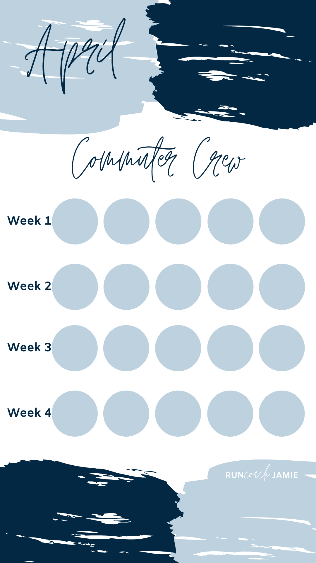 Click here for your digital tracker- You can track your progress via social media- put a check mark, emoji, gif, whatever you want each time you “commute”. Share it on your stories, posts, send me a screenshot… anything goes.